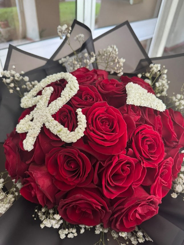 Iniziale decorata con delicati fiorellini di Velo da Sposa, simbolo di eleganza naturale e raffinatezza.