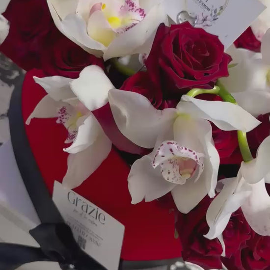 cofanetto esclusivo contiene 50 rose fresche, abbinate a delicate orchidee, per un regalo che incanta e sorprende. La perfezione dei fiori si fonde con la raffinatezza delle orchidee, creando una composizione unica, ideale per celebrare momenti speciali con stile. 🌹🌸